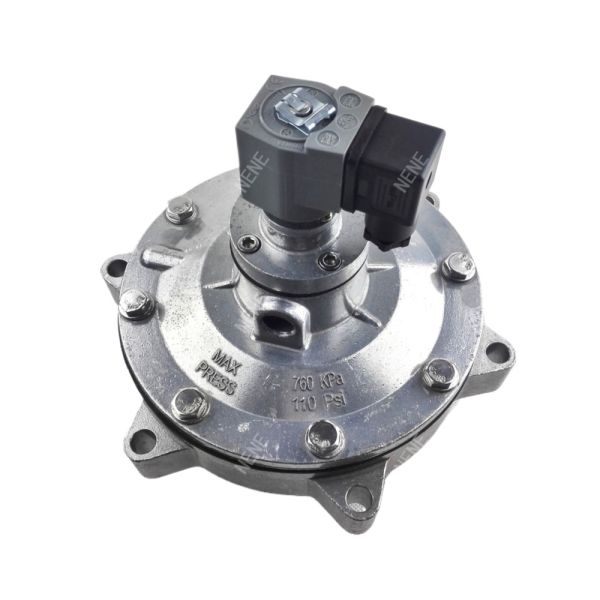 Manifold-mounted reverse pulse jet valve designed for high load filter cleaning applications.